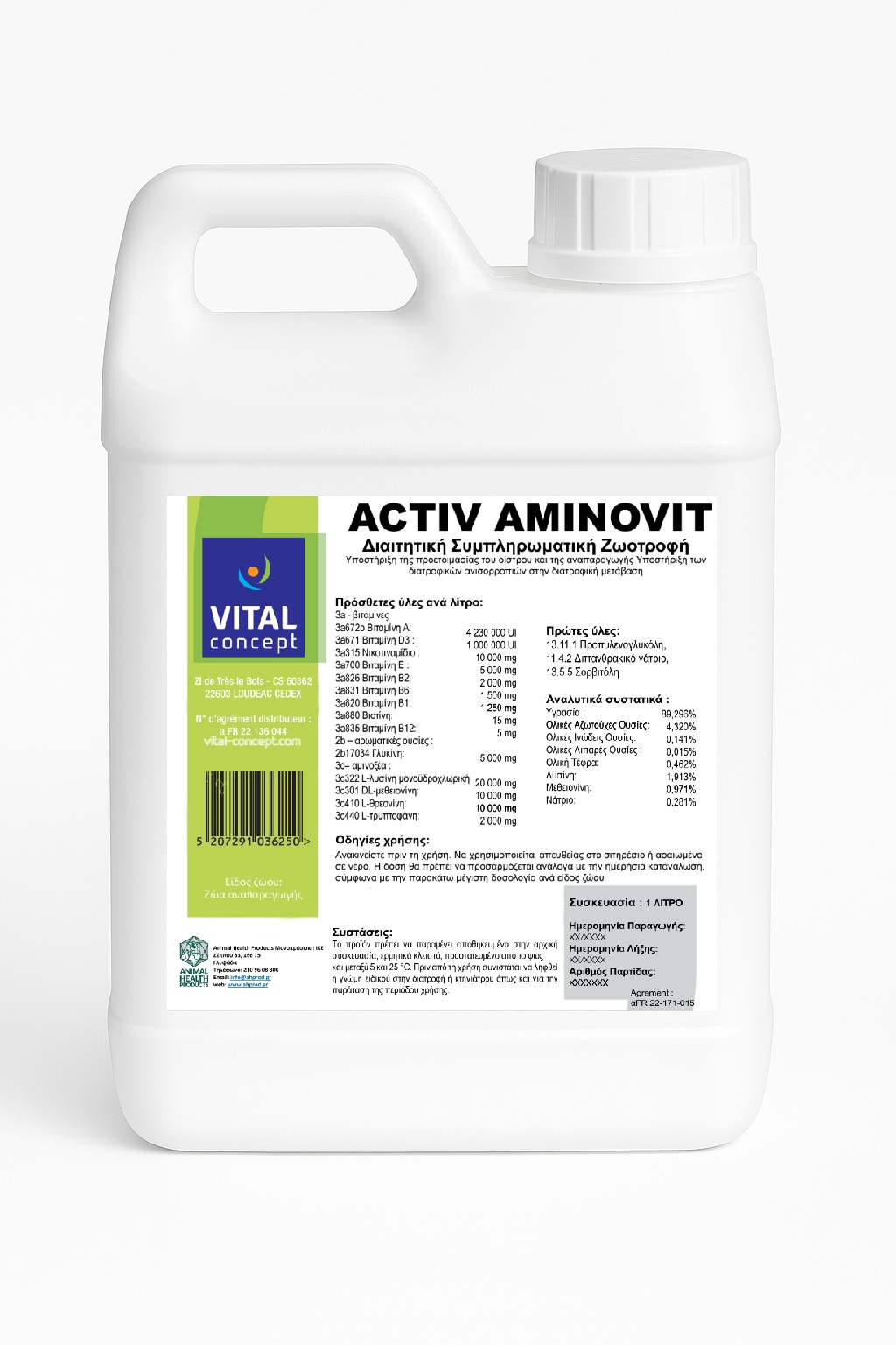 Το ACTIV AMINOVIT είναι διαιτητική συμπληρωματική ζωοτροφή που υποστηρίζει την προετοιμασία του οίστρου και της αναπαραγωγής. Παράλληλα προστατεύει τα ζώα από την ανεπάρκεια αμινοξέων και βιταμινών.